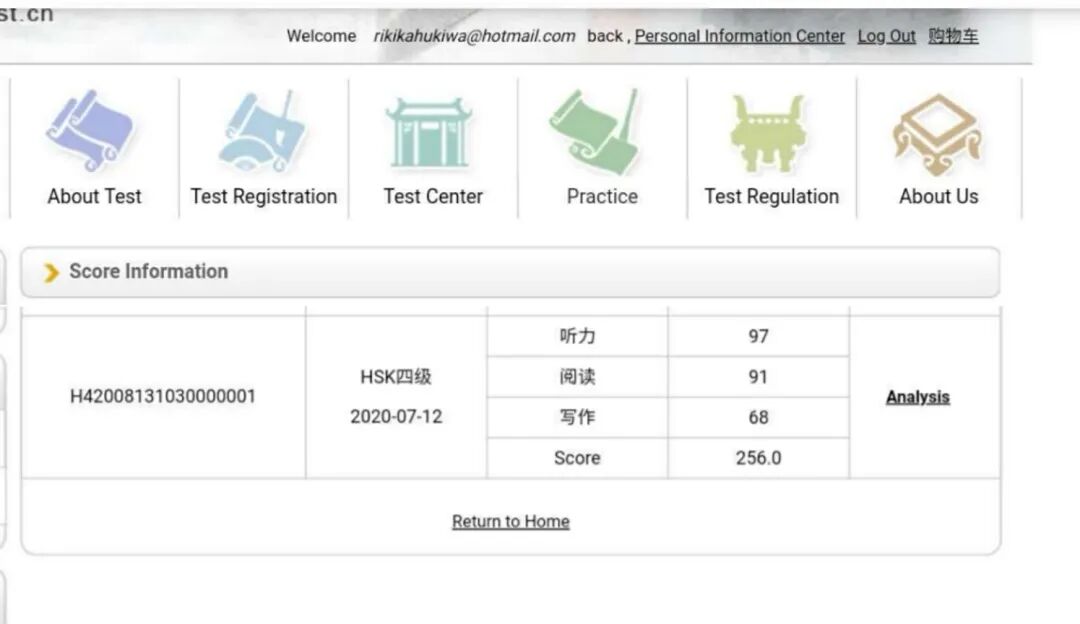 柯瑞麒在进行HSK4级听力练习、柯瑞麒的成绩