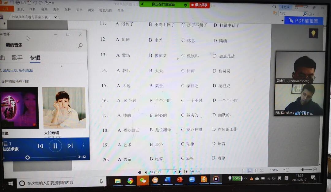 “我很开心能够参加孔子学院举办的“云端”汉语辅导班。我不仅学了关于HSK4级的词汇,更重要的是学到了做题的方法。以前我觉得HSK4级很难,特别担心考试,但这一个月的学习让我变得很有信心。”HSK4级班的柯瑞麒(Riki Kahukiwa)说。