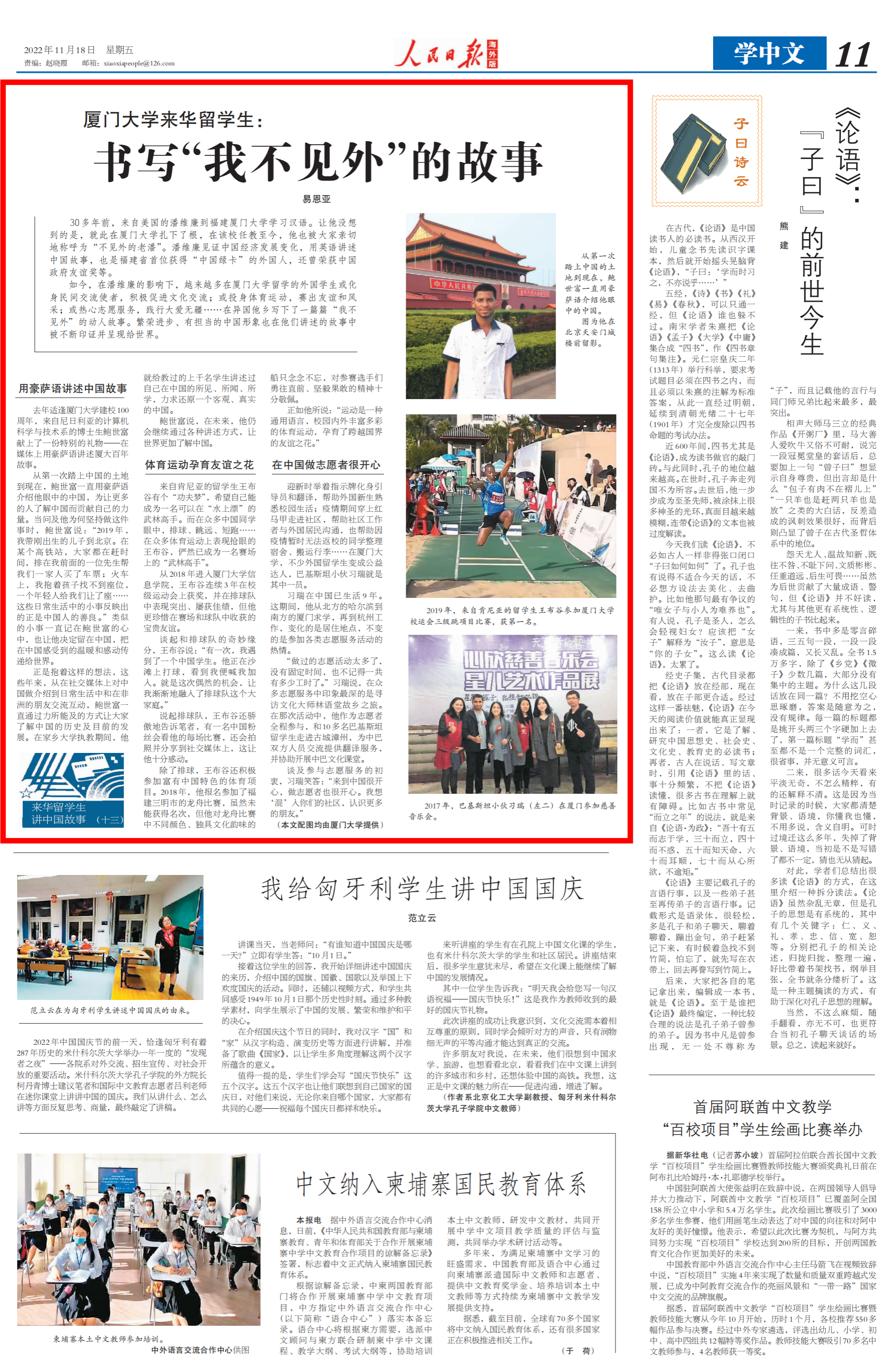 如今,在潘维廉的影响下,越来越多在厦门大学留学的外国学生或化身民间交流使者,积极促进文化交流;或投身体育运动,赛出友谊和风采;或热心志愿服务,践行大爱无疆……在异国他乡写下了一篇篇“我不见外”的动人故事。繁荣进步、有担当的中国形象也在他们讲述的故事中被不断印证并呈现给世界。