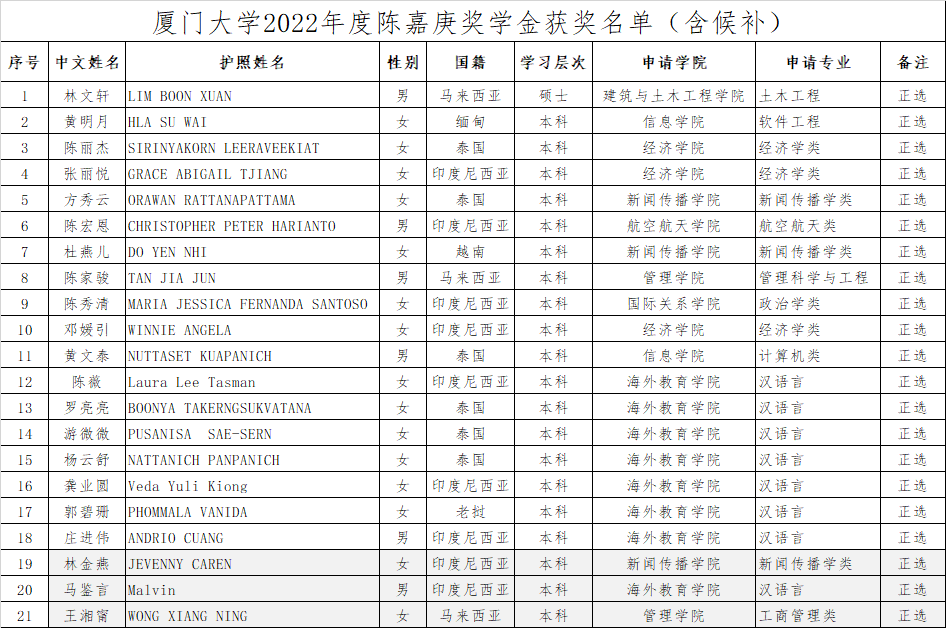 开学前,如正式人选中有本科生放弃入学,候补人选可顺位递补为正选并获得奖学金资助;如正式人选中无本科生放弃入学,候补人选可以自费新生身份办理入学注册。