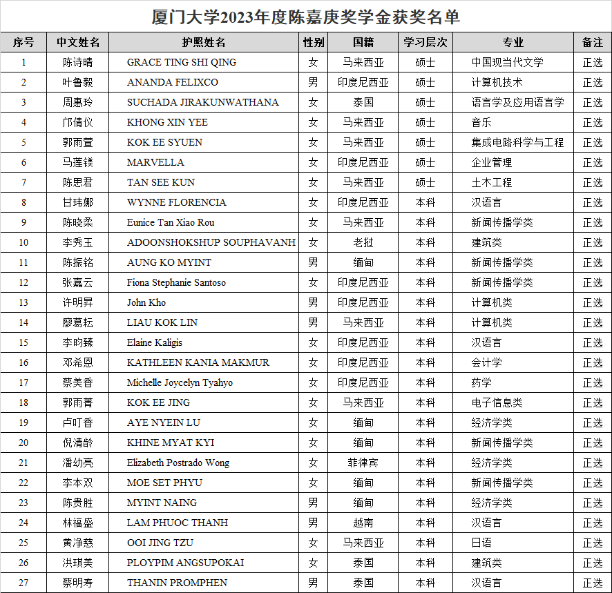 1. 开学前,如正式人选中有本科生放弃入学,候补人选可顺位递补为正选并获得奖学金资助;如正式人选中无本科生放弃入学,候补人选可以自费新生身份办理入学注册。
