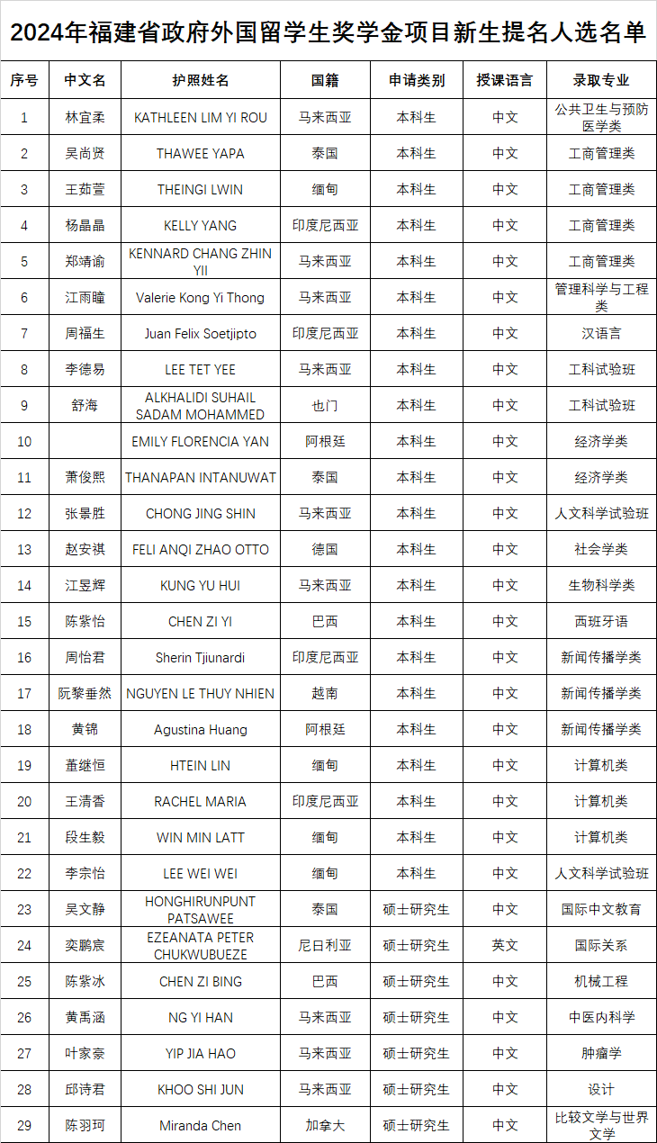 1.福建省奖学金新生须以自费生身份办理入学注册并按规定缴纳学费、住宿费、保险费等各项费用。最终获奖名单预计将于秋季学期经福建省教育厅正式批准后确定,学校将根据省教育厅统一安排,一般情况会在下一学期按照资助标准发放奖学金。