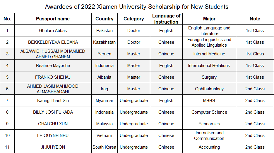 2.For detailed registration procedures, please refer to the Enrolment Instructions to be issued later and pay close attention to the latest information on the XMU New Student Registration System.