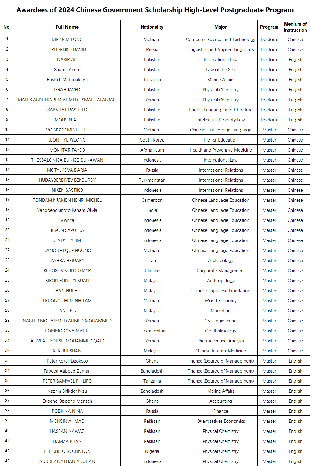 2. For detailed registration procedures, please refer to the Enrolment Instructions to be issued later and pay close attention to the latest information on the University’s portal (http://welcome.xmu.edu.cn).