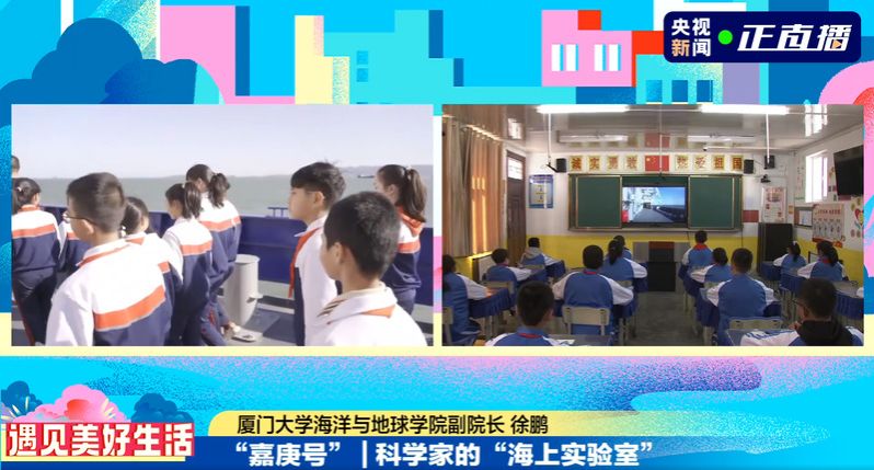 On March 8, CCTV released the third episode of its serial program Discover Wonderful Life. Reporters stepped on board the Research Vessel Tan Kah Kee of XMU, broadcasting a live class given by teachers and students from the College of Ocean and Earth Sciences. Class participants were students from a primary school in Ningxia Hui autonomous region. Transcending over two thousand kilometers, XMU vividly demonstrated the knowledge of marine sciences to the students.
